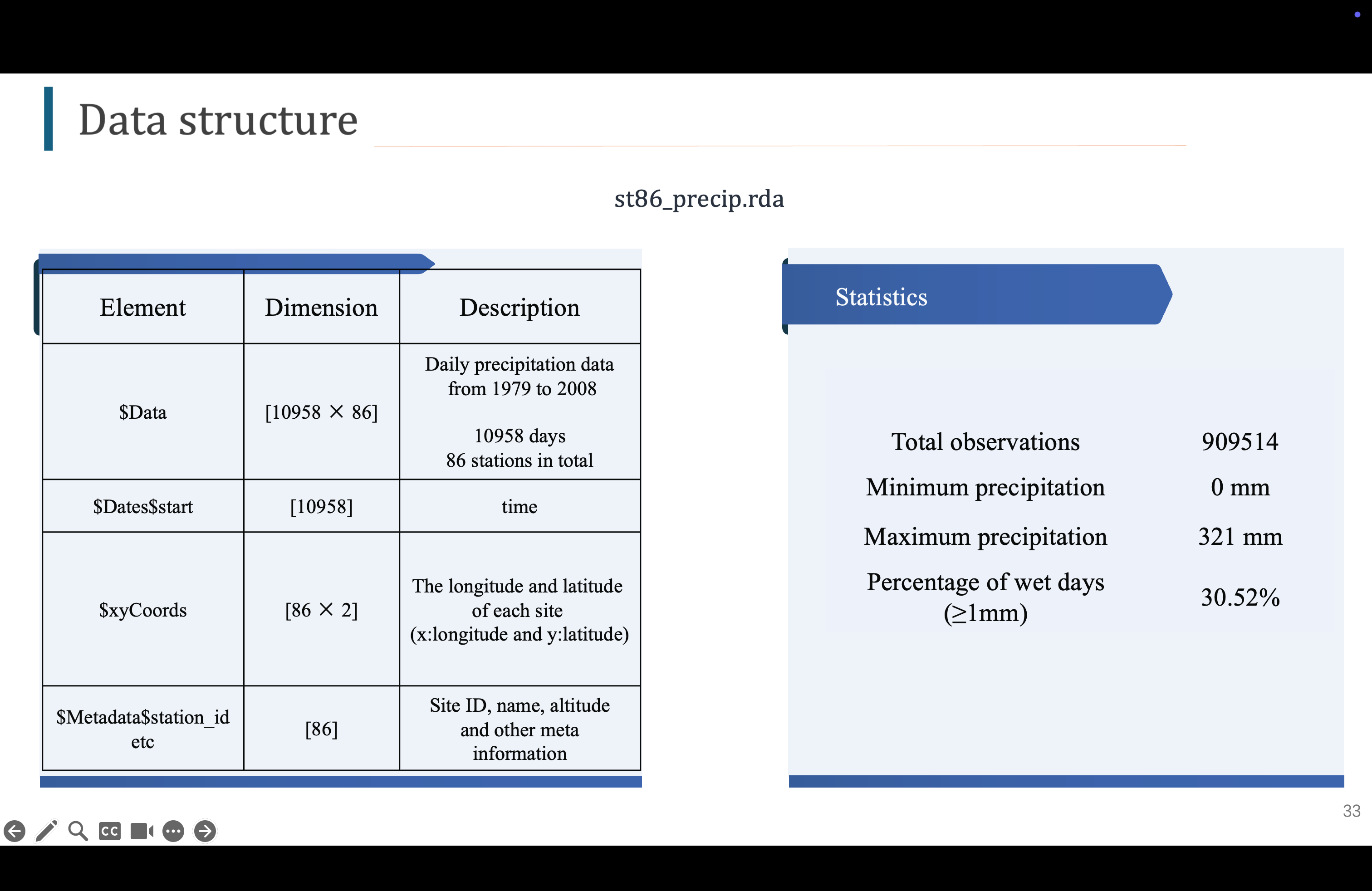 Ces données sont des predictands, c'est-à-dire les données d'observation de 86 sites, avec un total de 10958 jours.