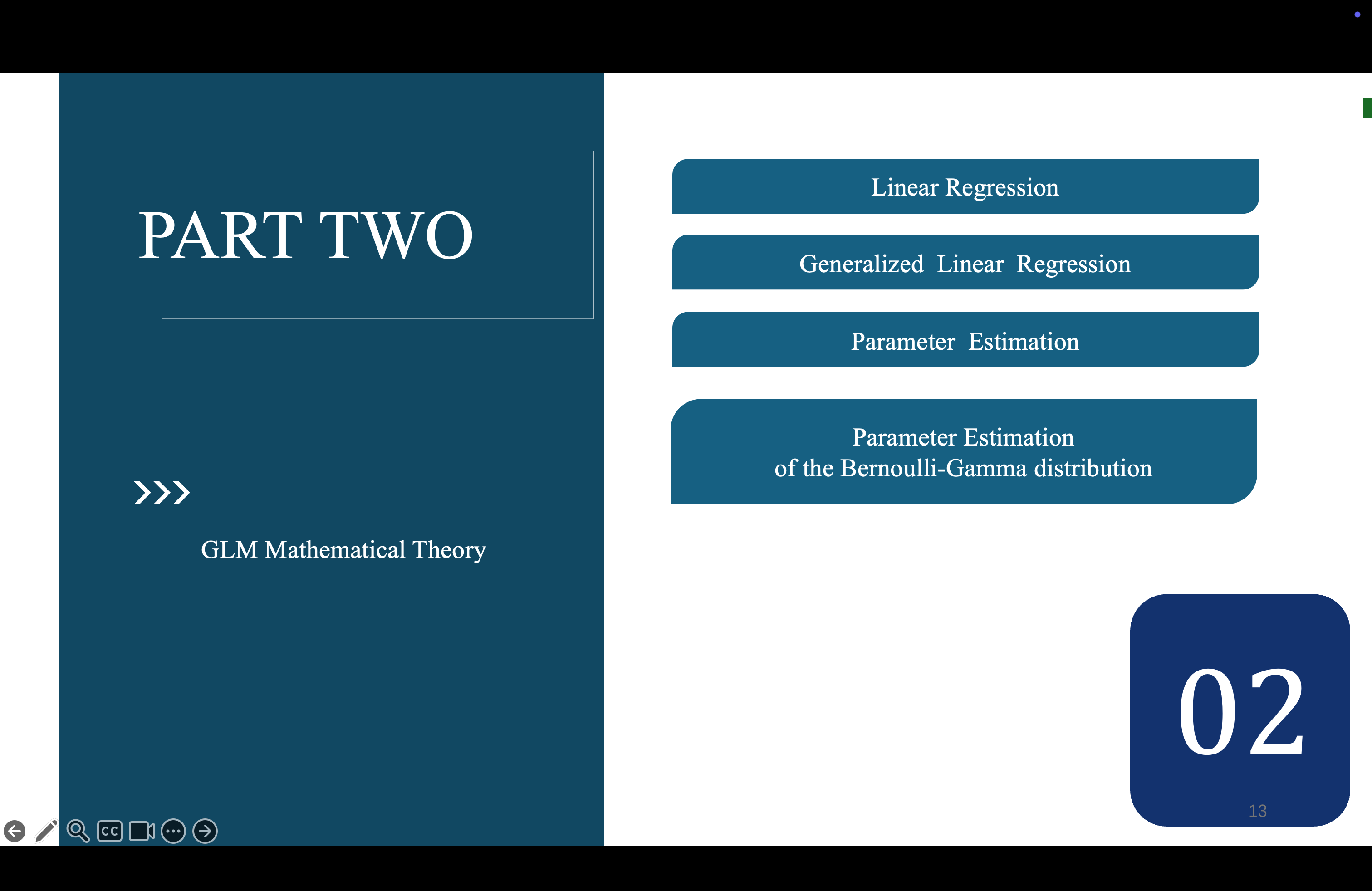 La deuxième partie concerne la théorie mathématique des modèles linéaires généralisés, qui n'est pas la partie principal, car de nombreuses théories mathématiques proviennent d'Internet et sont très compliquées à expliquer. Je vais les passer rapidement.