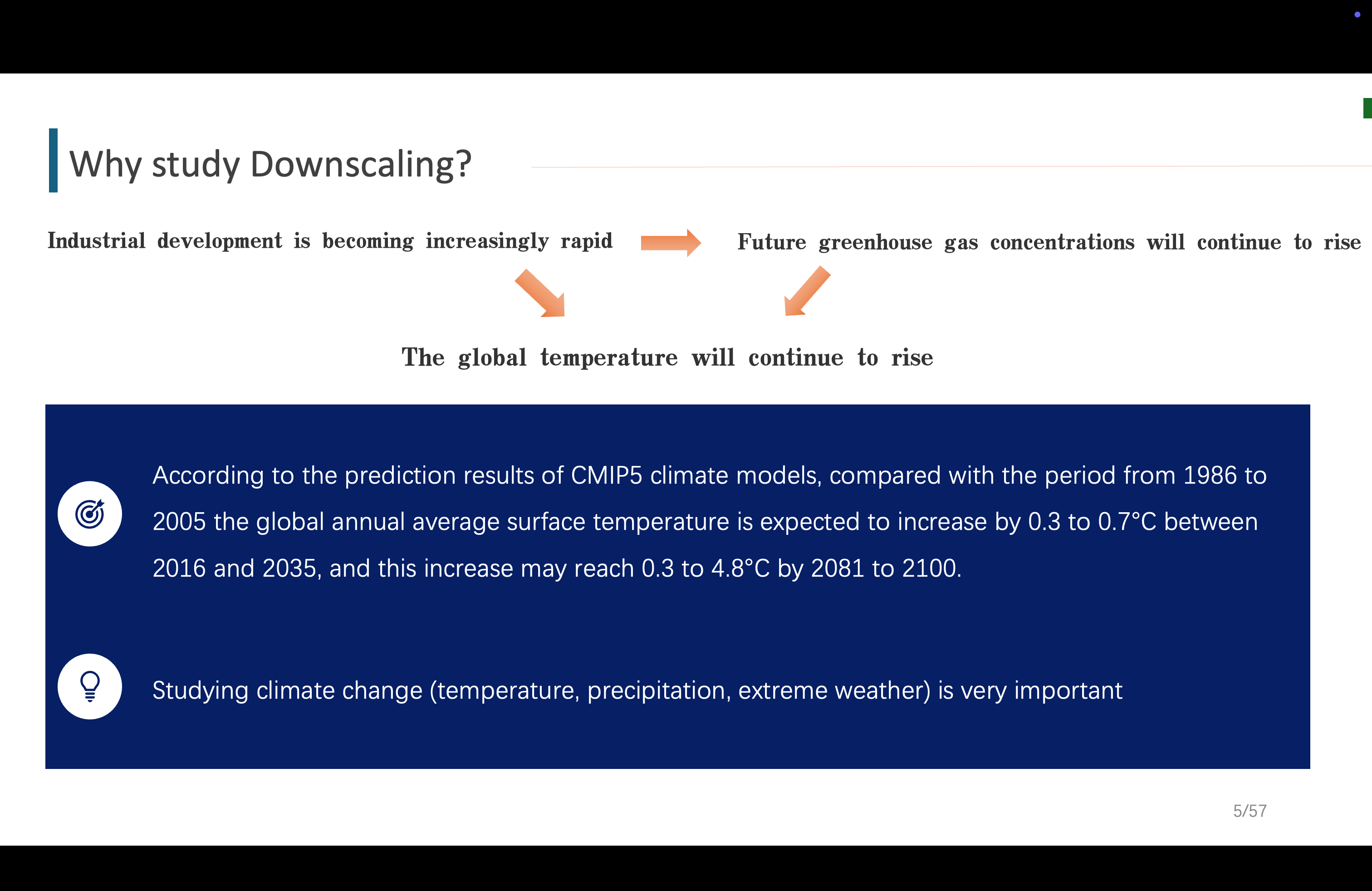 En ce qui concerne l'introduction, tout d'abord, en raison du problème de détérioration du climat actuel, nous devons étudier et prédire les changements climatiques futurs.