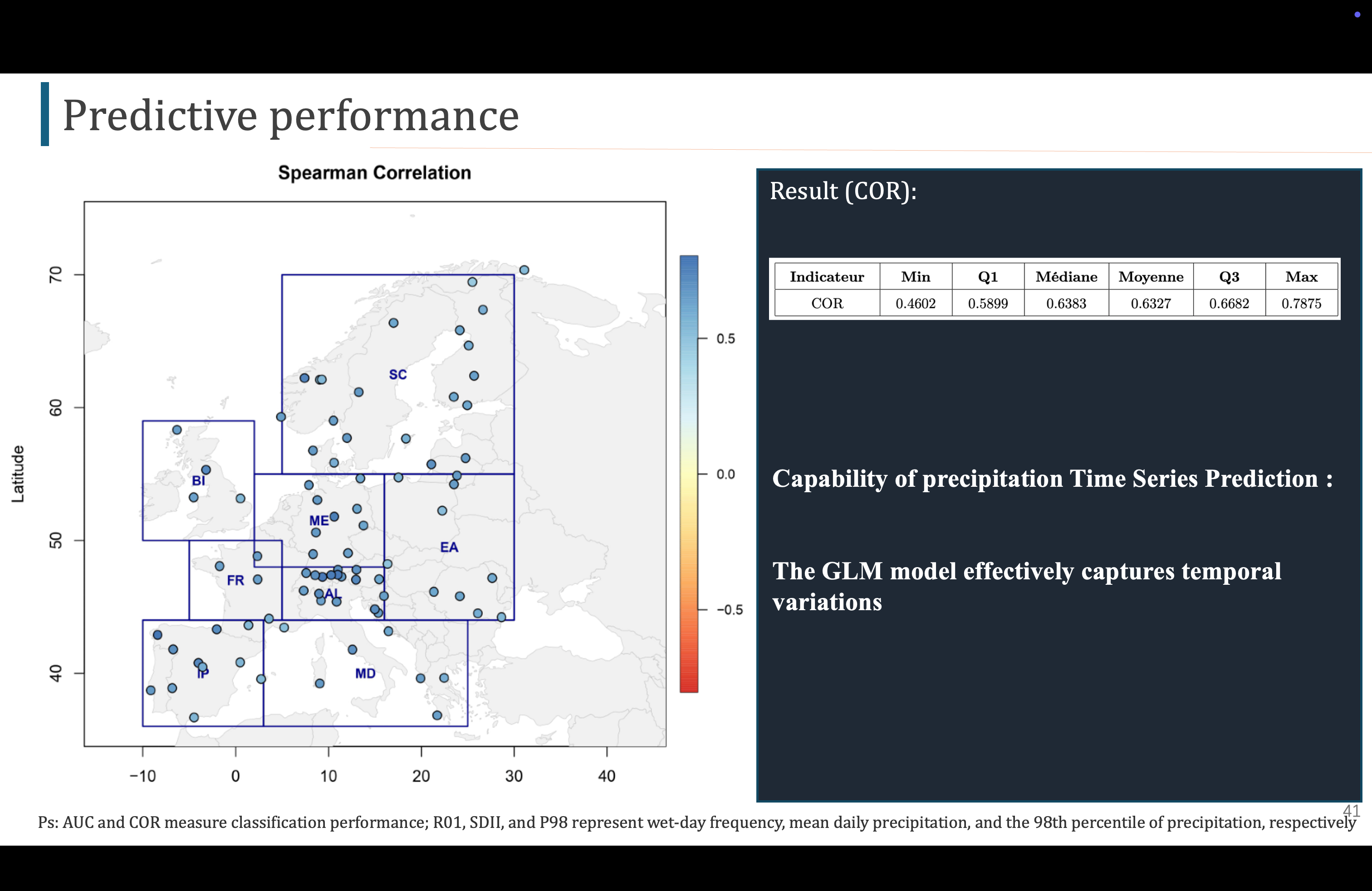 Nous allons nous concentrer sur la performance du modèle GLM dans la réduction statistique des précipitations.